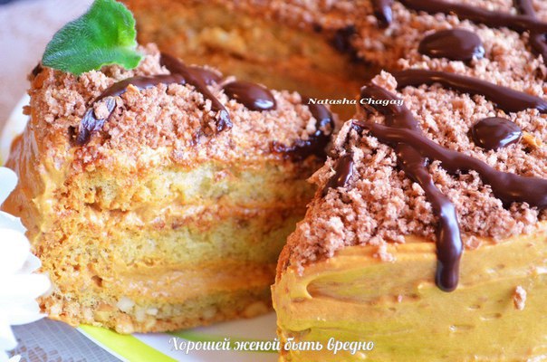 Каждый корж слегка пропитать сладкой водой или сиропом, как было сделано в рецепте торт на сковороде.